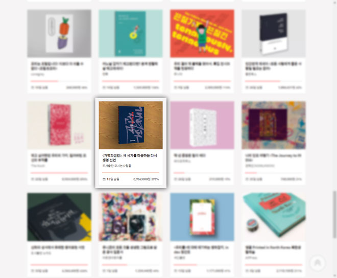 필자가 대표로 있는 도서출판 모시는사람들에서 『개벽파선언』을 단행본으로 발간하기 위한 텀블벅(크라우드펀딩)을 시작했다(7월 17일~8월 18일). 크라우드펀딩은 다수의 후원자로부터 프로젝트(출간, 제품제작, 영화 등 기타 창작물 제작) 추진을 위한 자금을 후원받고, 그에 따르는 보상(도서 등 프로젝트 결과물과 추가 기념품)을 제공하는 것이다. 애초에, 기성 제작 환경에서는 제작될 수 없는 개인적인, 대중성이 희박한, 사회적 관심 자장이 형성되지 않은 프로젝트에 대한 후원으로부터 시작하였으나, 최근에는 기성의 제작 환경(책의 경우 기성의 출판사)을 갖춘 주체들도 속속 크라우드펀딩에 참여하고 있다. 『개벽파선언』 단행본 출간 프로젝트도 그 경우에 해당한다. 오늘날 다른 영역과 마찬가지로 출판 부문은 새로운 시대환경(‘제4차 산업혁명’) 속에서, 지난 수백 년 동안 지속되어 오던 출판의 기본 구조(원고집필·편집제작·판매홍보)와는 다른 구조 속에서 작동하는 사례와 범위가 많아지고, 넓어지고 있다. 크라우드펀딩을 통한 출판도 그중 하나다.