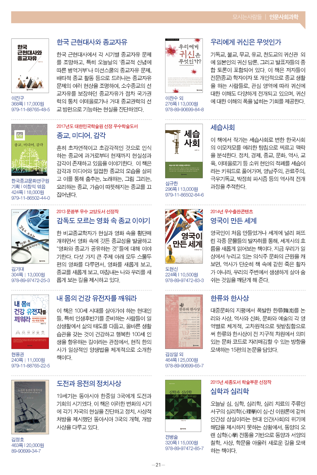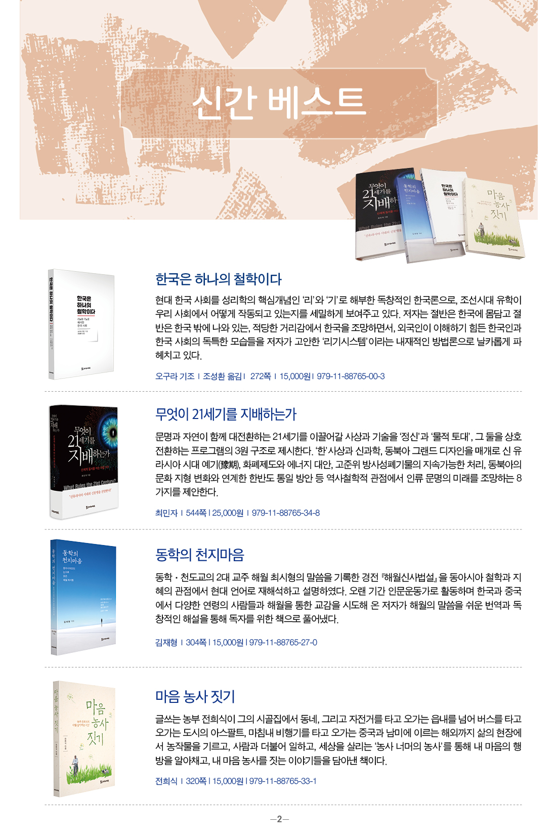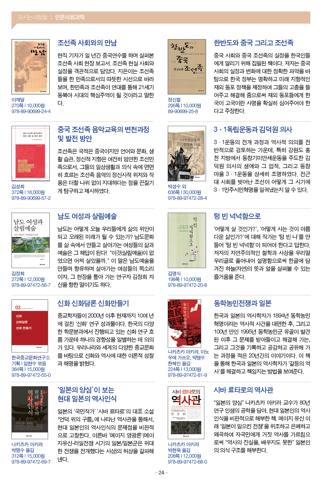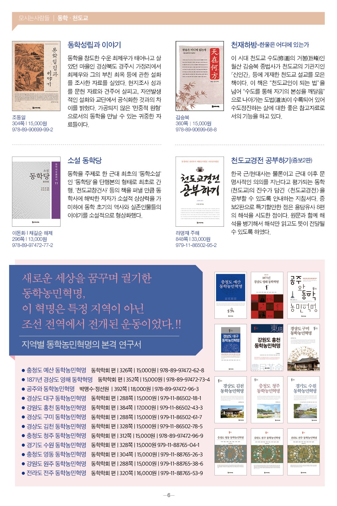모들통문 11호는 [동학·천도교], [종교학], [인문사회과학], [문학] 네 개 분야와 평화교실, 죽음학 총서 등의 시리즈, 『동학 천도교 인명사전』, 『한국신종교대사전』 등 약 300종의 도서에 대한 정보를 담았습니다.