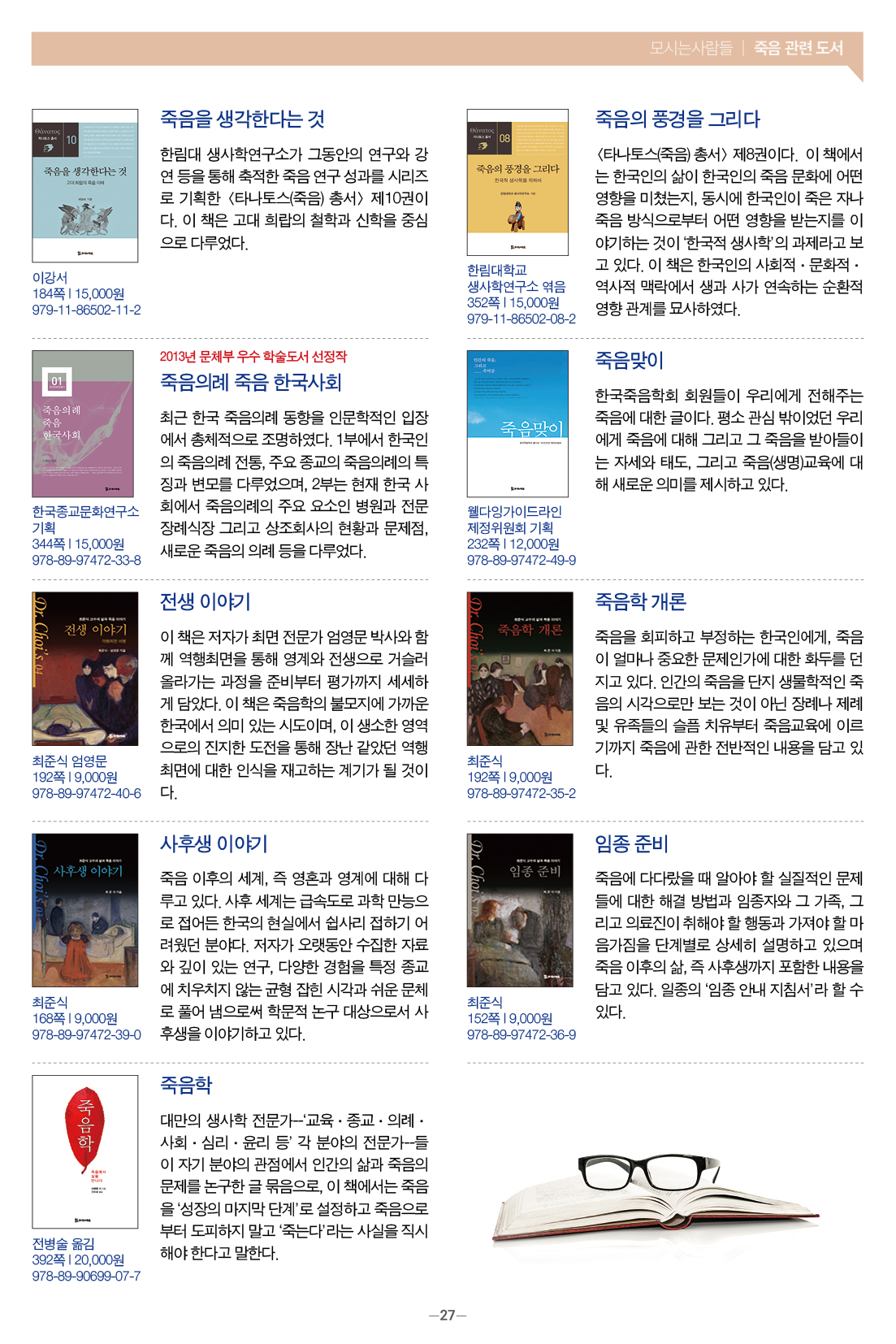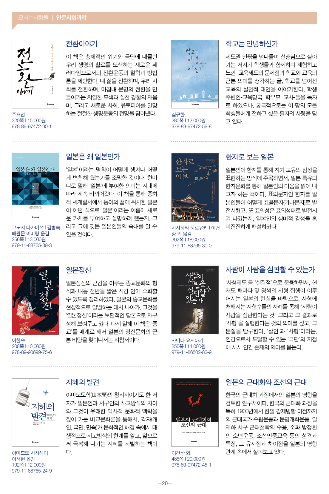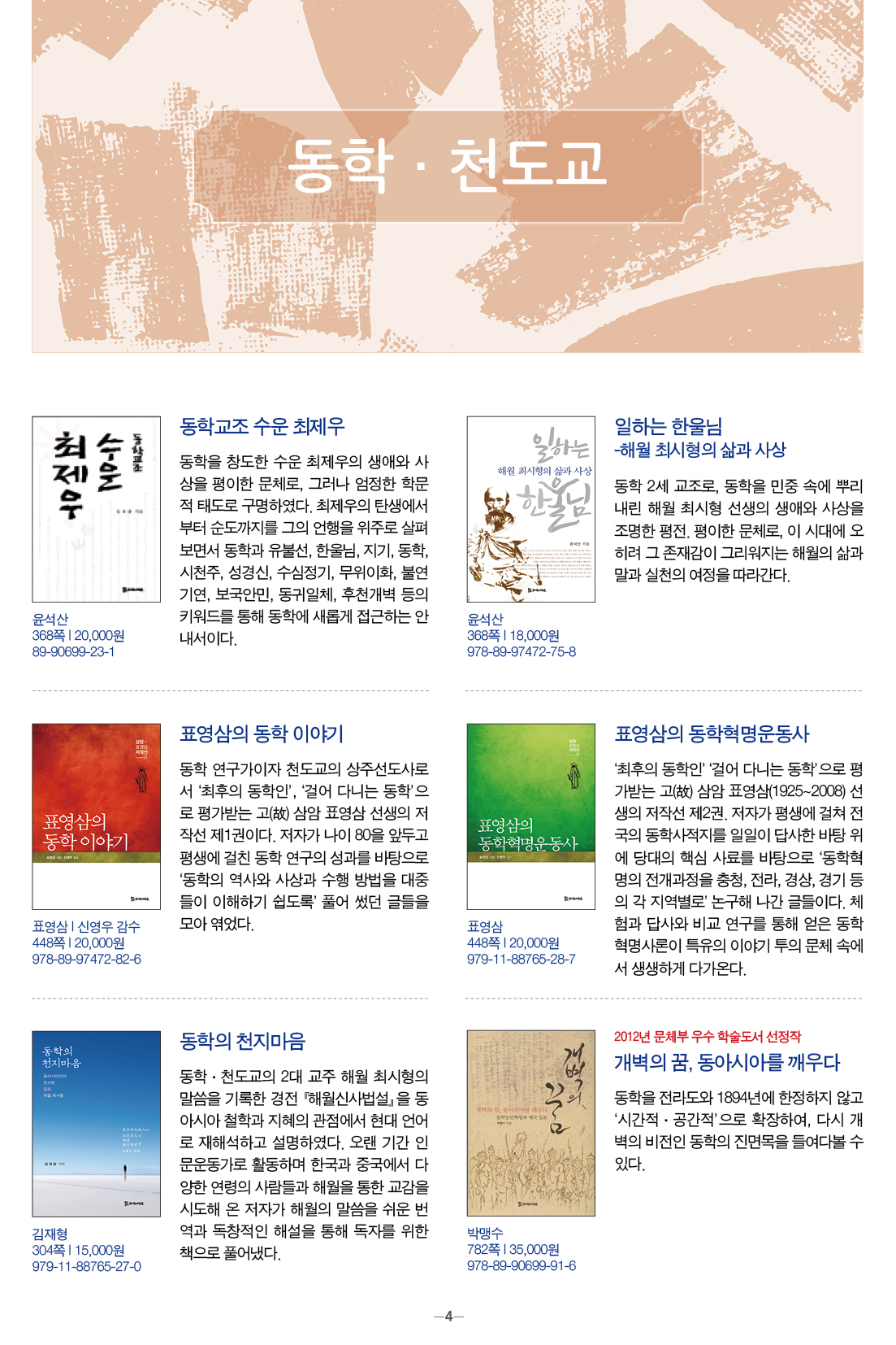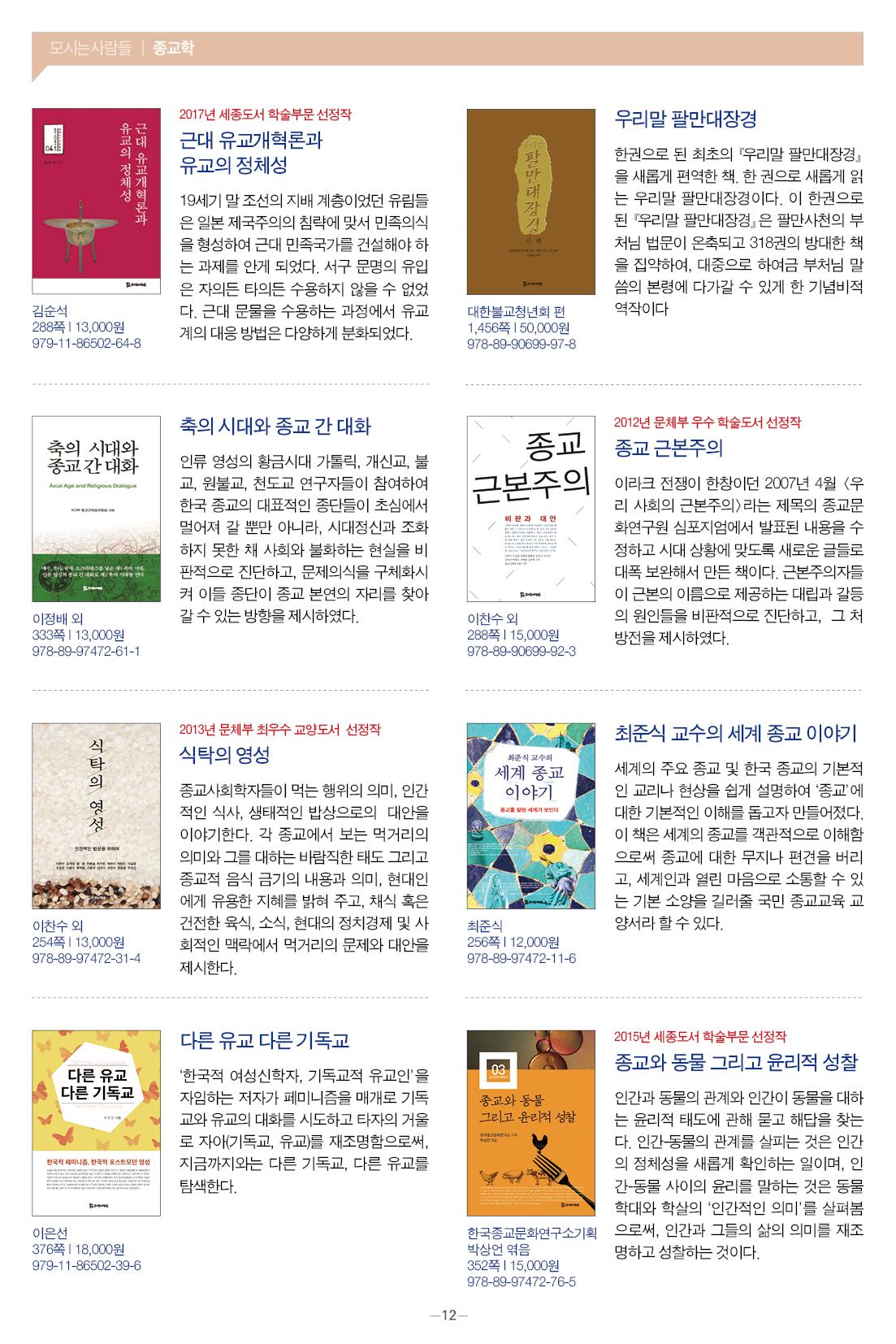 모들통문 11호는 [동학·천도교], [종교학], [인문사회과학], [문학] 네 개 분야와 평화교실, 죽음학 총서 등의 시리즈, 『동학 천도교 인명사전』, 『한국신종교대사전』 등 약 300종의 도서에 대한 정보를 담았습니다.