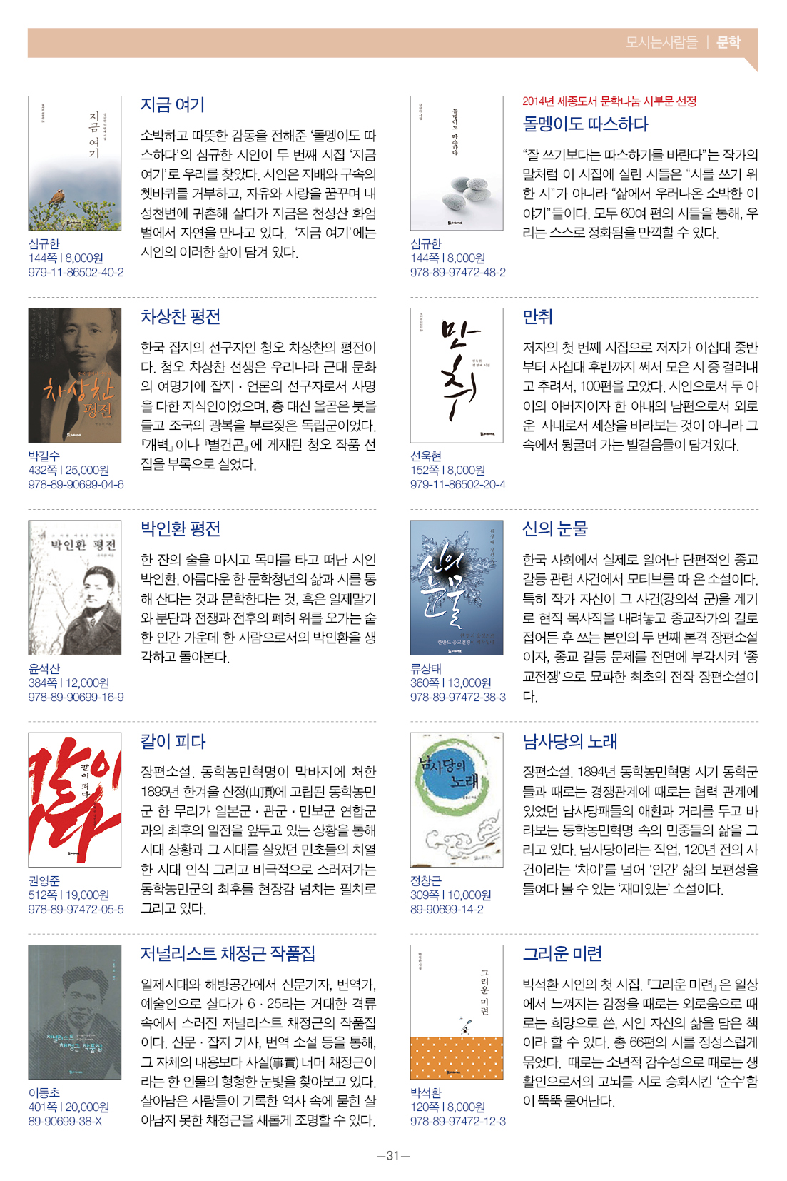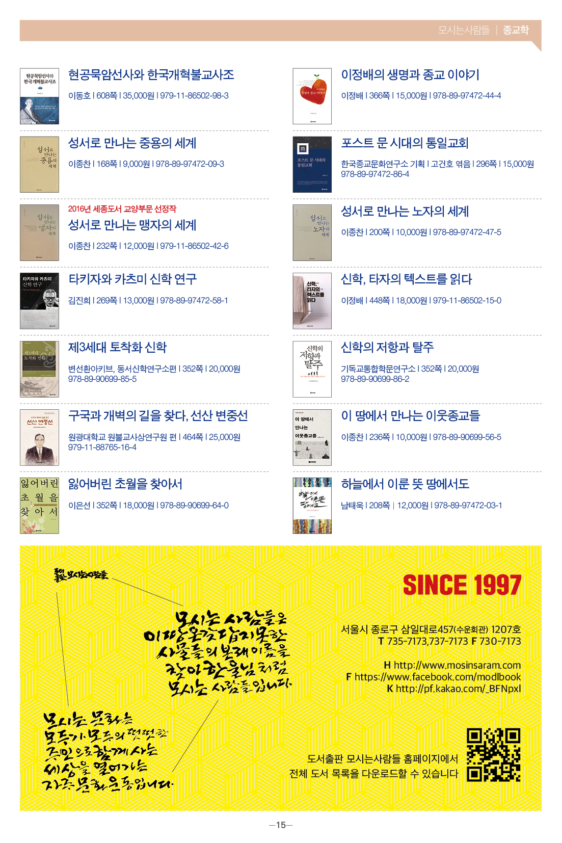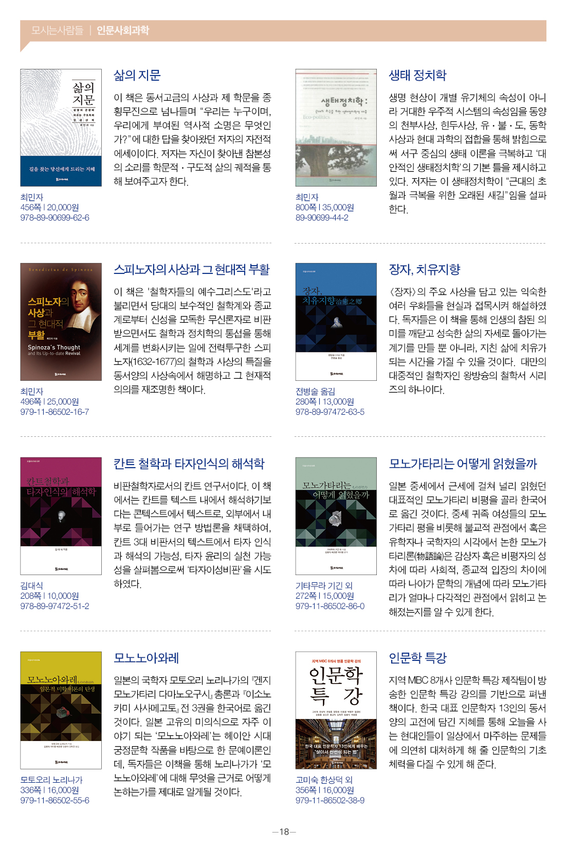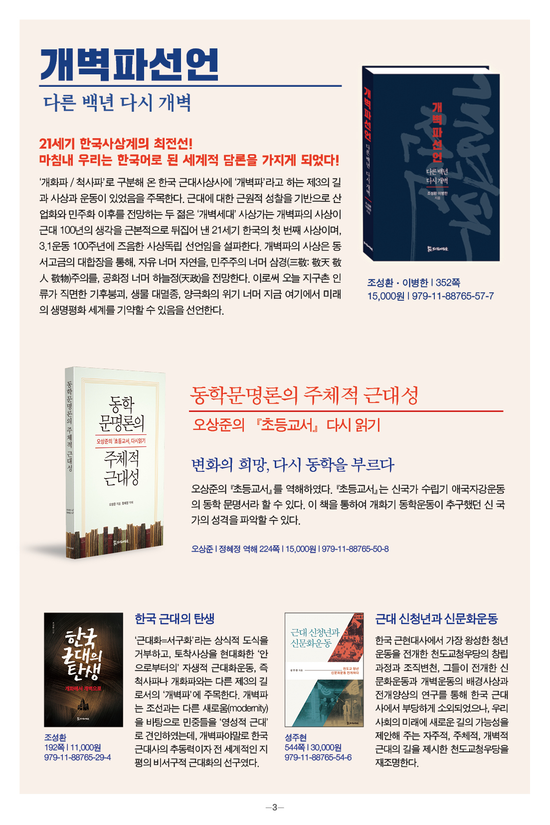 모들통문 11호는 [동학·천도교], [종교학], [인문사회과학], [문학] 네 개 분야와 평화교실, 죽음학 총서 등의 시리즈, 『동학 천도교 인명사전』, 『한국신종교대사전』 등 약 300종의 도서에 대한 정보를 담았습니다.