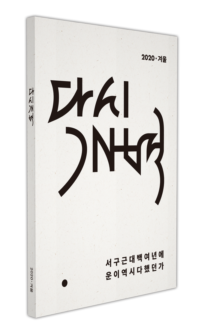 『다시개벽』 창간호는 “영혼의 탈식민지화”를 저변에 두고 기획된다(겨울호). “서구 근대 백여 년에 운이역시 다했던가”라는 주제를 마련하였다(cf. ‘유도 불도(儒道 佛道) 누천년(累千年)에 운이 역시 다했던가.’ 水雲 崔濟愚). 아시아 문명에서 유교와 불교는 고대부터 19세기에 이르기까지 국가의 지배 이데올로기이자 사대주의 문화 권력의 위계질서를 지탱하는 이념적 토대였다. 수운은 동학을 창도하며 그때까지 지배-피지배 구조를 떠받치고 있던 이념이 그 운을 다했다고 선언했다. 마찬가지로 지난 백년의 역사는 서구 제국주의 열강의 식민지 쟁탈전과 그 이후에 지속된 서구 근대 문명의 전파로 인하여, 세계인 대부분의 무의식 속에는 서구적 사유와 서구적 삶에의 욕망이 주입되었다. 그 결과로 오늘날 지구가 이 지경에 이르지 않았는가. 태양은 서쪽에서 저문 뒤에 동쪽에서 다시 떠오르는 것 아니겠는가. 이러한 발상에서 창간호를 기획했다.