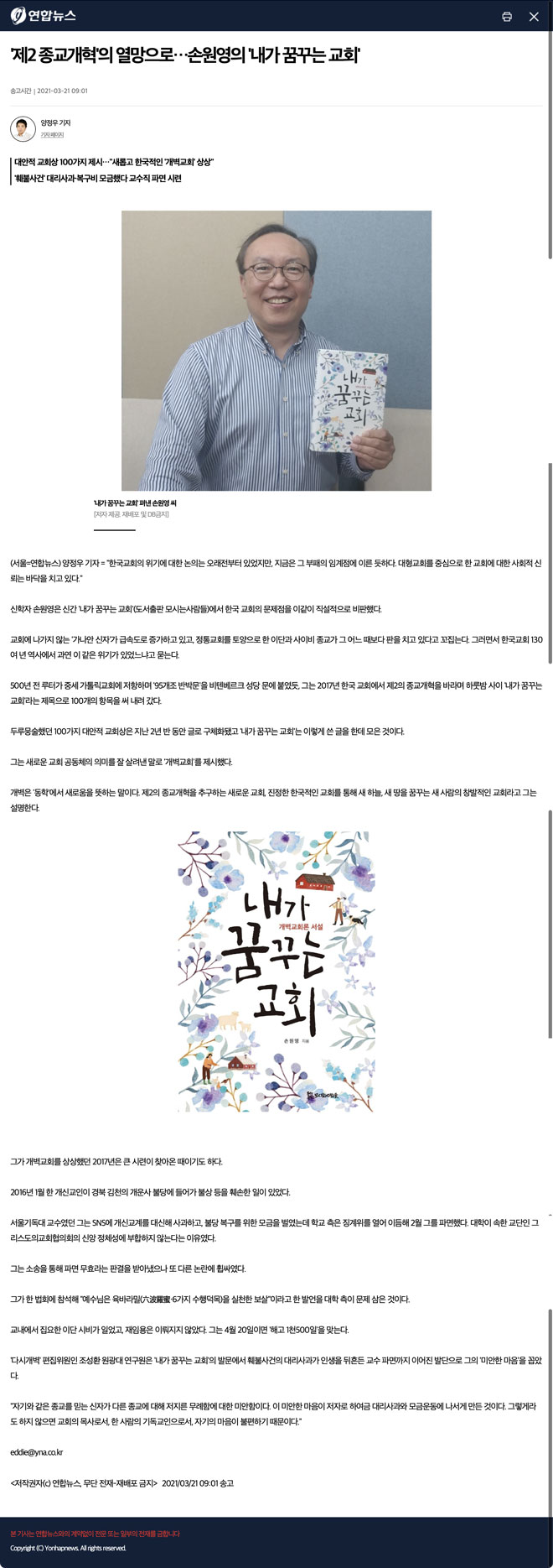 '제2 종교개혁'의 열망으로…손원영의 '내가 꿈꾸는 교회'