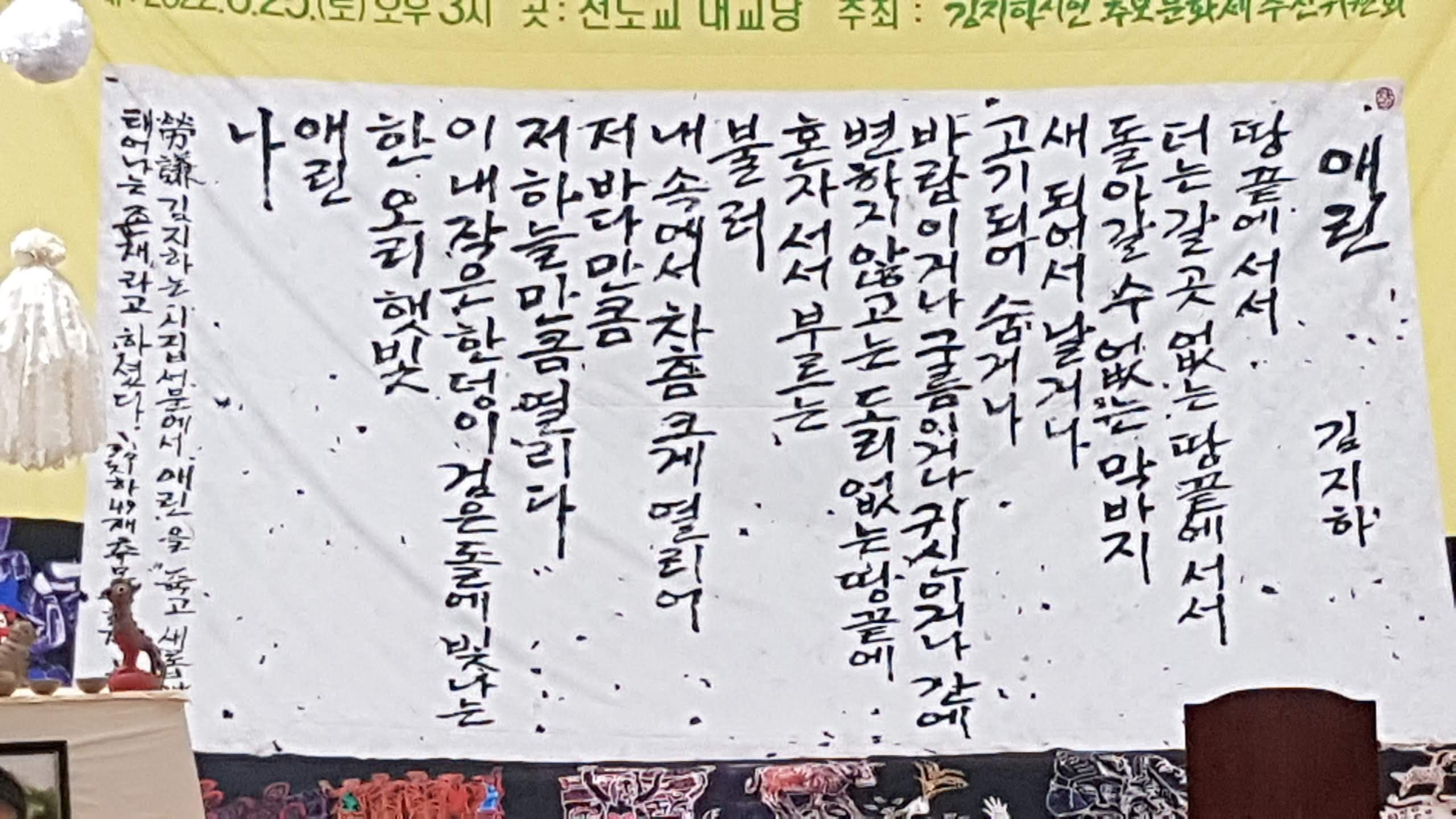 ○ 민주화운동 시절에는 투쟁을 벌이다가 사형 혹은 무기징역을 선고 받은 전력이 있는 인사들은 또다시 전면에 나서지 않아도 묵인하는 불문율이 있었다. 그 불문율에 따라서 조용히 지내도 무방했을 김지하가 직진 돌파한 덕분에 박정희 정권의 인혁당 재건위 사건과 민청학련 사건에 대한 용공조작은 무력화됐다. (중략) 1980년 그는 마침내 네 번째 옥살이에서 풀려났지만 여전히 계속되는 군부독재, 분단으로 고통당하는 남북의 주민들, 영·호남의 지역 대립, 끈질긴 빈부격차 등을 고민해야 했다.(중략) 아직도 낡은 틀에 갇혀 있는 현실에 다시 젊은 시절의 ‘직진 본능’이 되살아났다. 무엇보다 자기 몸처럼 아끼던 젊은이들이 분신하고 투신하여 목숨을 끊는 사태를 저지하지 않으면 ‘선배 노릇을 내던지는 짓’이라고 생각했다. 김지하와 함께 한반도의 해방과 민주, 생명평화를 꿈꿨던 분들은 부디 그의 명복을 빌어주시길 바란다. 가슴의 응어리가 있다면 푸시길 바란다. 떠나는 김 시인에게 그가 구성지게 부르던 노래 ‘부용