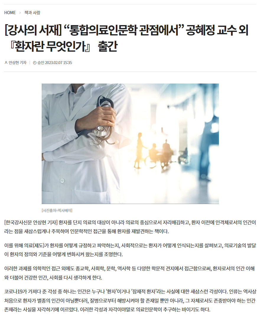 [강사의 서재] “통합의료인문학 관점에서” 공혜정 교수 외 『환자란 무엇인가』 출간